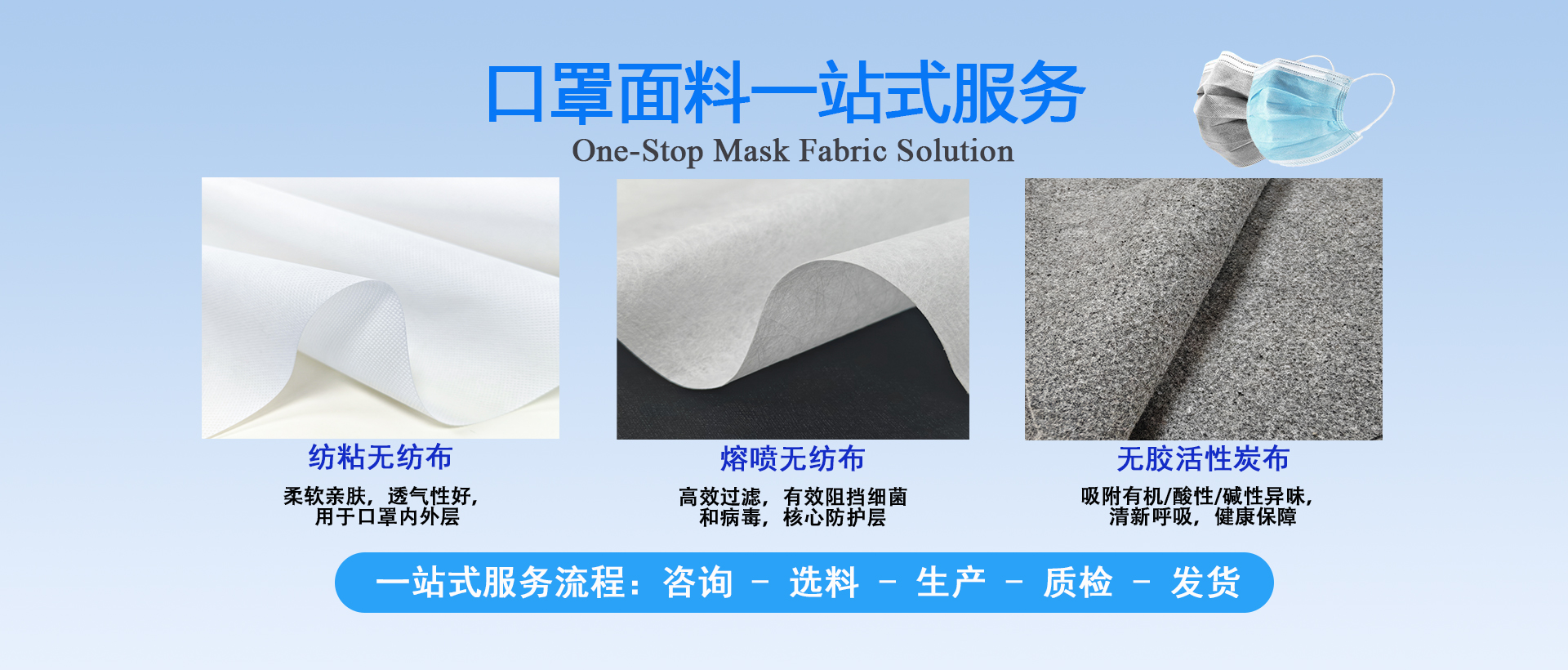 擁有10萬級(jí)凈化車間,500平方米研究生實(shí)驗(yàn)室,紡粘無紡布和水駐極熔噴布生產(chǎn)線;年產(chǎn)布料10000噸